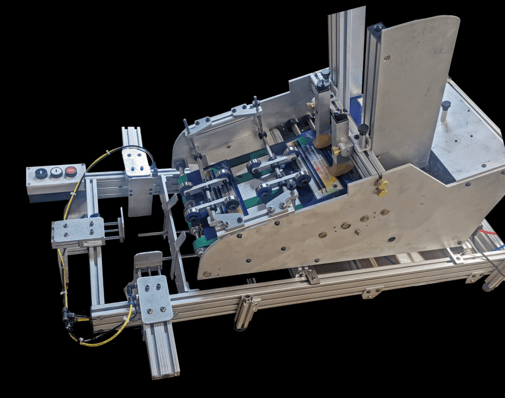Once your count is reached, the bottom opens, and your jogged stack is dropped onto the table, where it can be automatically pushed out with an air cylinder, or it can be dropped onto a conveyor.